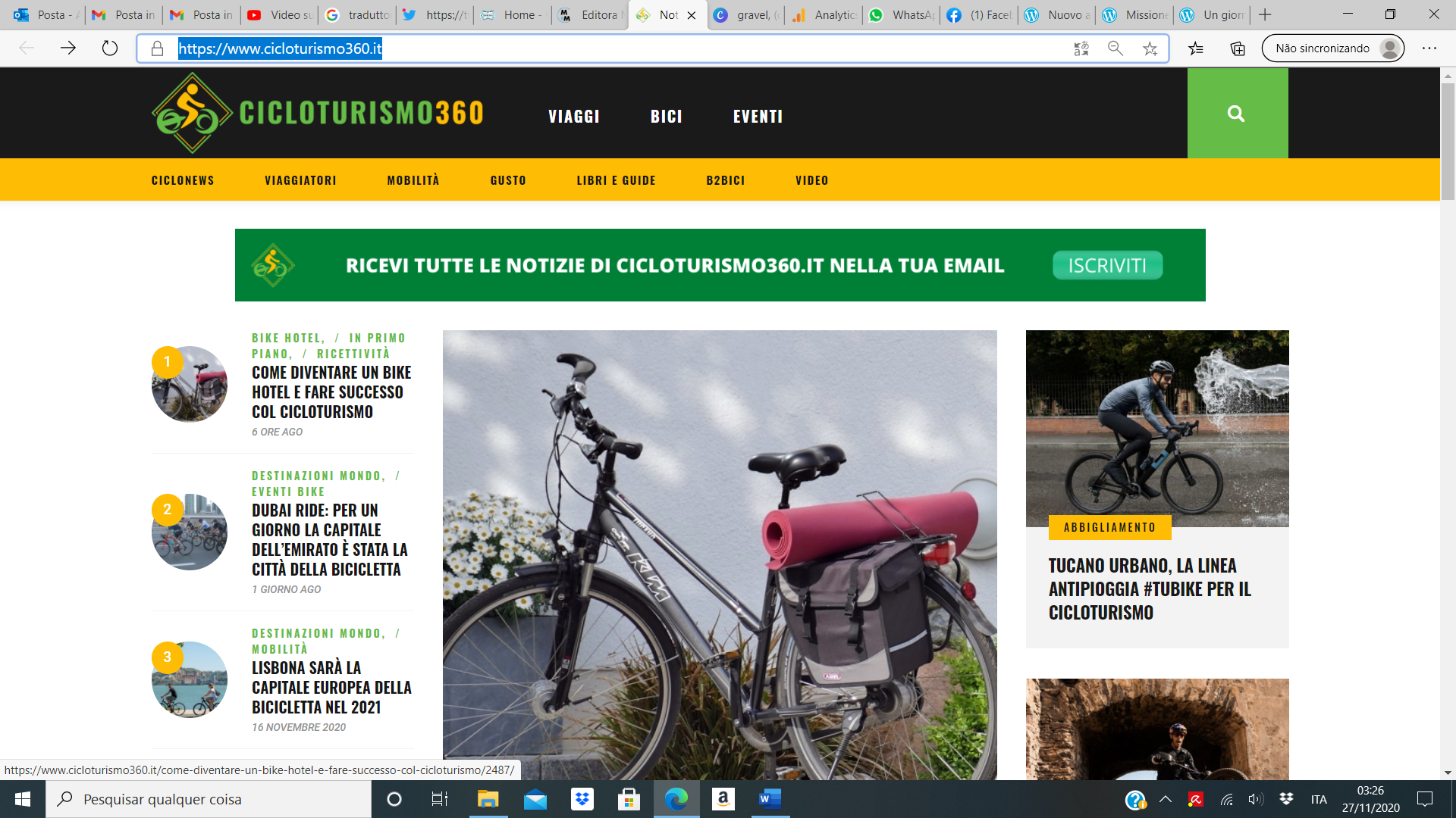 E’ nato Cicloturismo360, web magazine dedicato al cicloturismo a 360 gradi, senza escludere nessuno. E’ la “mia” ultima creatura, o creazione: metto “mia” tra virgolette perché questa avventura è nata da una condivisione con alcuni colleghi, per cui non è davvero soltanto mia.